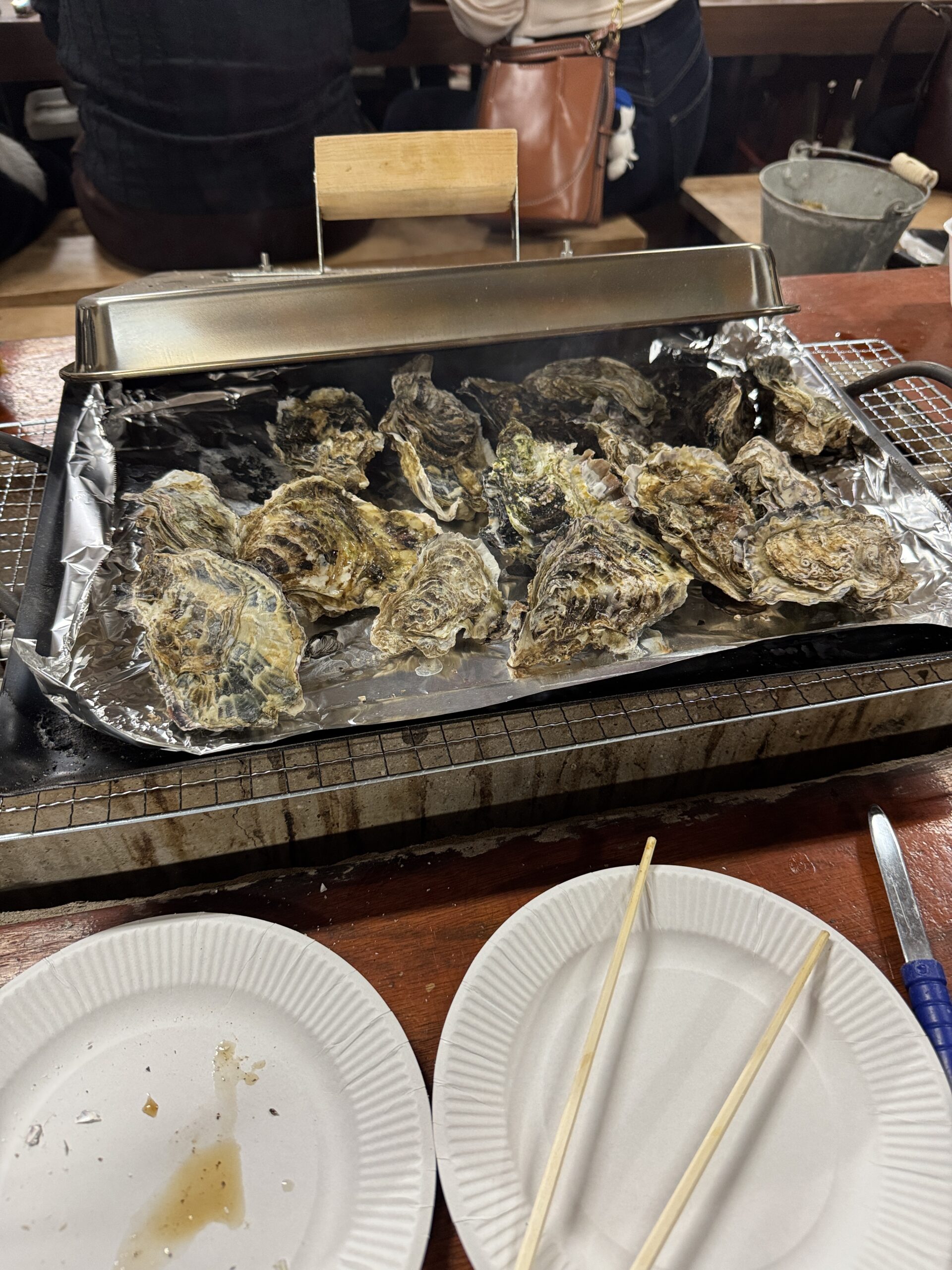 せっかく来たので、とりあえず冷凍の牡蠣を焼いて食べてみました