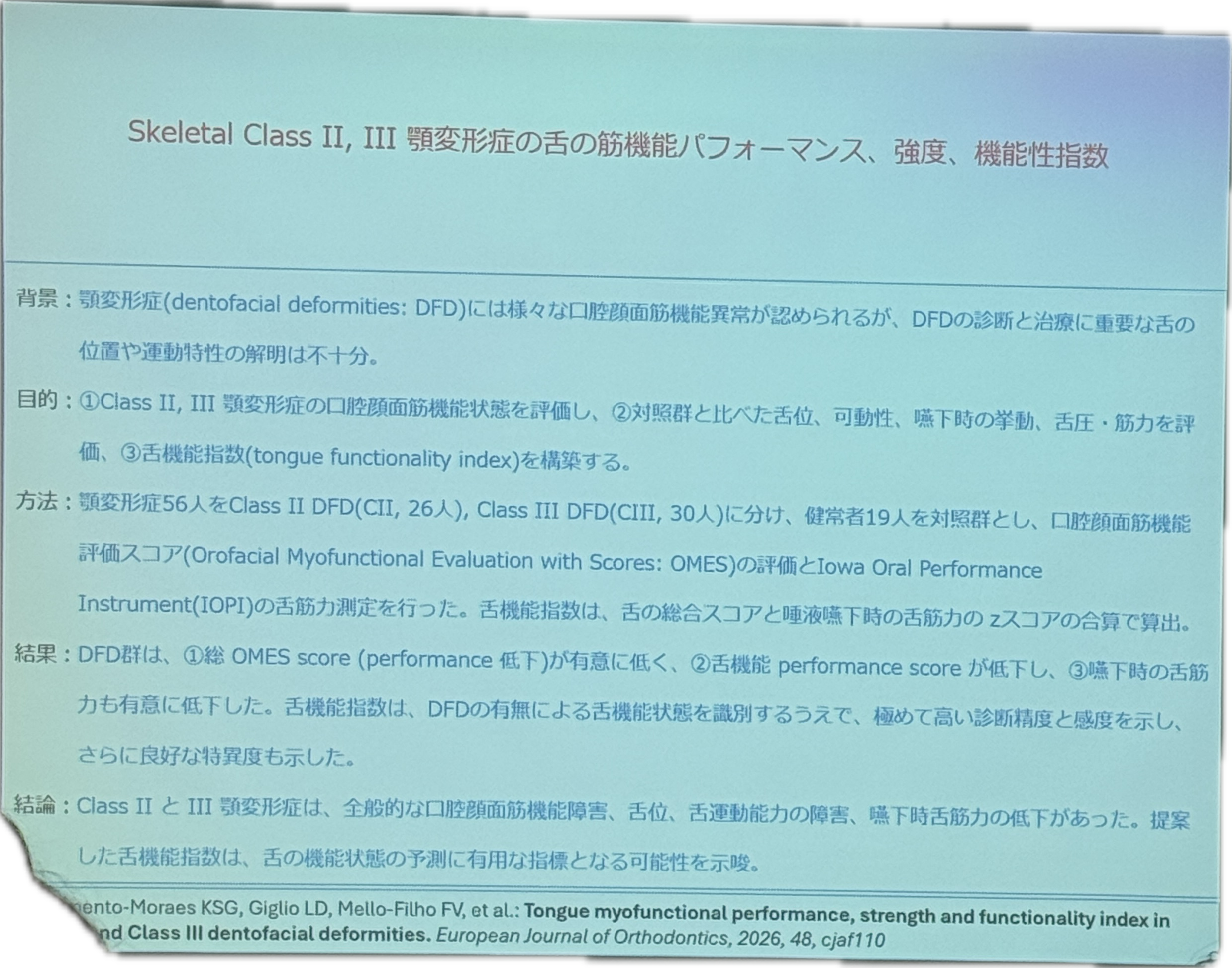 こちらの論文はClassⅡ(出っ歯)ClassⅢ(受け口)の子どもの舌の機能を評価している