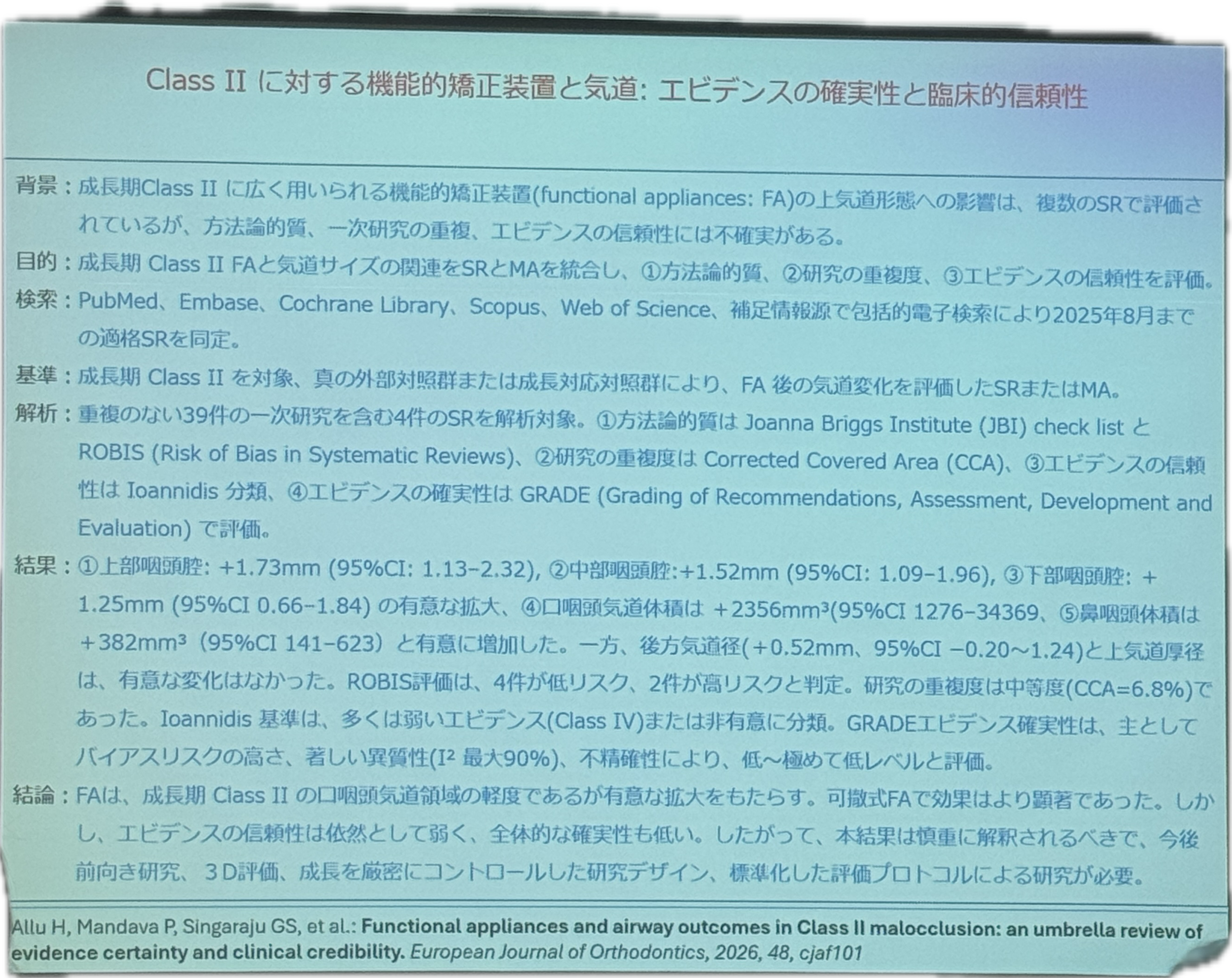 こちらの論文は矯正装置と気道容積の変化を見ているものです